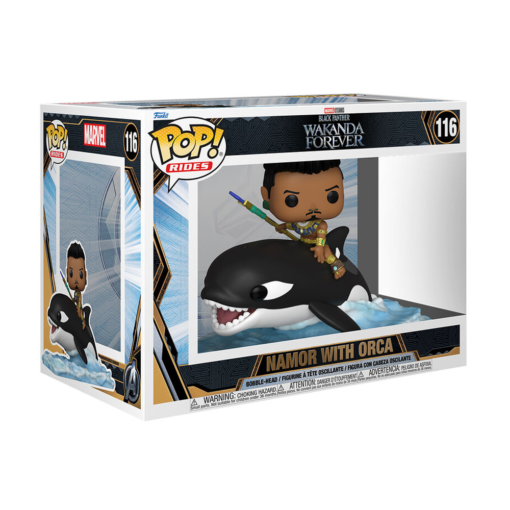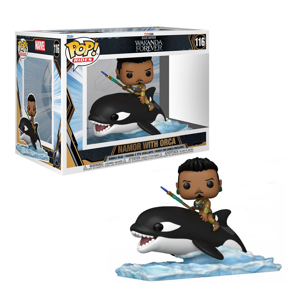 Figura funko pop de Namor con orca de la película Black Panther: Wakanda Forever.